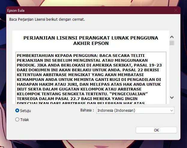 Pada jendela "License Agreement", pilih Agree, lalu klik OK.
