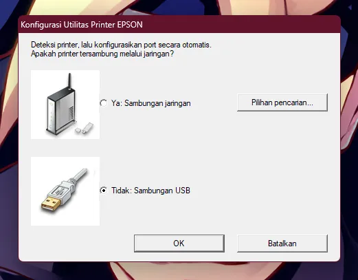 Tunggu hingga proses instalasi selesai. Setelah itu, pastikan printer Anda telah terhubung ke komputer melalui USB dan dalam keadaan menyala. Klik OK.