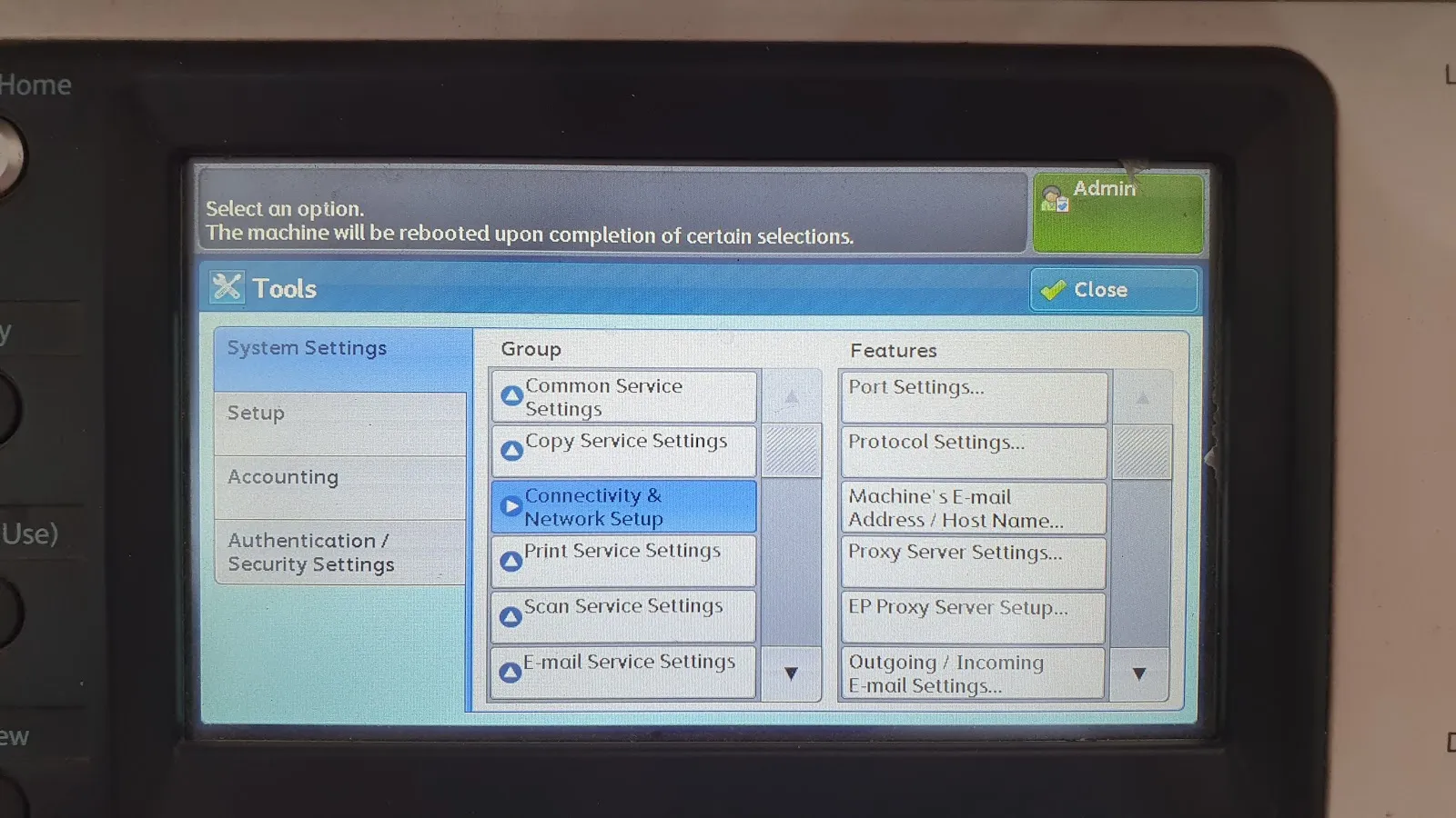 Akses menu admin pada printer dan navigasikan ke pengaturan jaringan. Biasanya berada di bawah menu Connectivity & Network Setup > Protocol Settings.