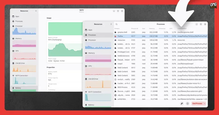 Penggantian yang lebih menarik adalah Resources, yang akan mengambil alih tugas GNOME System Monitor. Berbeda dengan Showtime, Resources bukanlah aplikasi inti GNOME, melainkan proyek komunitas yang tergabung dalam GNOME Circle—sebuah kurasi aplikasi berkualitas tinggi.