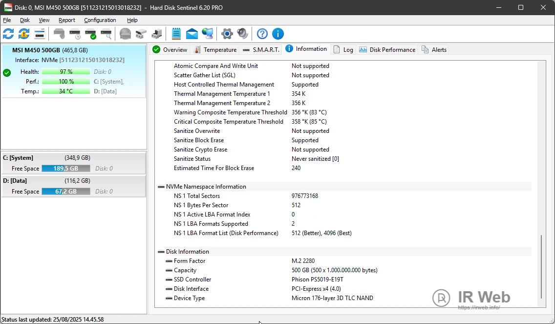 Saya segera memeriksa spesifikasi SSD saya menggunakan Hard Disk Sentinel untuk memastikan.